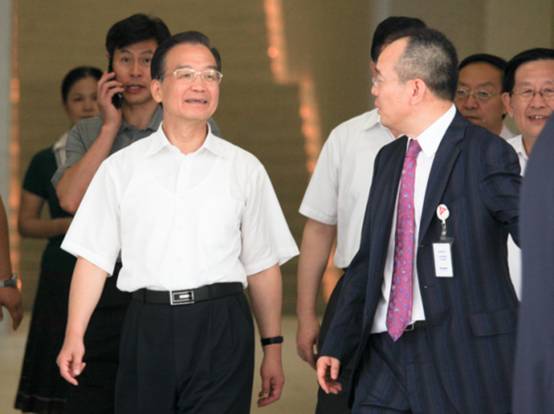 8月21日,深圳金蝶软件园阳光明媚,绿竹猗猗。****中央政治局常委、国务院总理温家宝在****中央政治局委员、广东省委书记汪洋,工业和信息化部部长李毅中,广东省委常委、深圳市委书记王荣,深圳市委副书记、深圳市市长许勤等50多位领导的陪同下来到深圳金蝶软件园视察。
